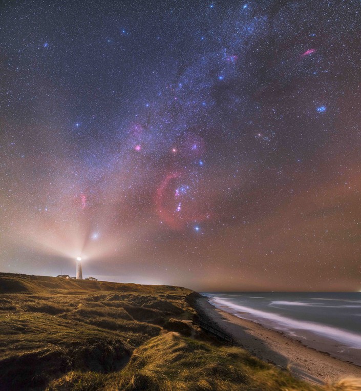 "Композиция невероятна. Снимок заставляет чувствовать себя исследователем, когда ты изучаешь его от земного берега до космического поля. Свет маяка завораживает", - делится впечатлениями астроном Королевской обсерватории Гринвич Том Керсс.