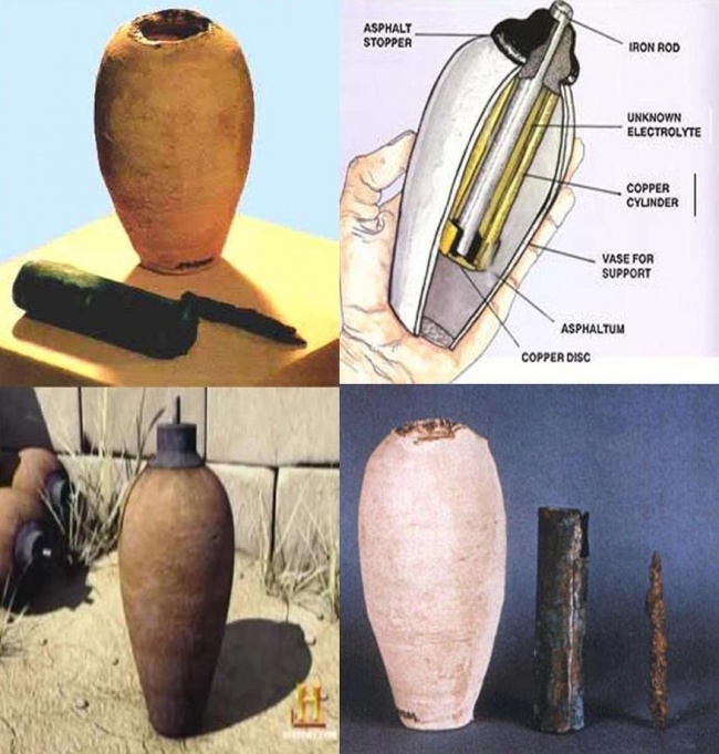 До открытия электричества первыми фору дали месопотамцы. В 30-х годах XX века на археологических раскопках под Багдадом был обнаружен загадочный артефакт, получивший название "Багдадская батарейка". Он имел следующий вид: 13-сантиметровый сосуд, через горлышко которого был проведен железный прут со следами коррозии. Внутри сосуда находился медный цилиндр, а внутри цилиндра - железный стержень.
