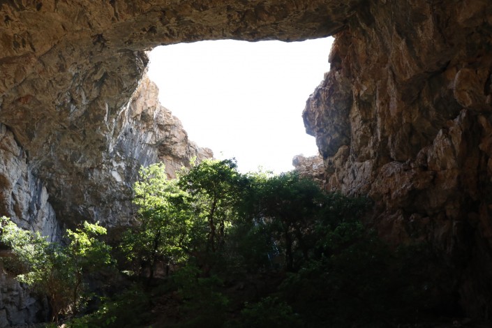 По одной из них, рассказывает нам наш гид, в этой пещере долгие годы жил большой и злой дракон. Он приносил много бед местному населению, пожирал их скот. Когда дракон взлетал, то задевал крыльями часть свода и поэтому она рушилась. Конец его пагубным действиям положил пророк Сулейман. Он посадил чудище на цепь. Гид указывает нам место, где спал этот дракон - самый центр пещеры, куда попадают солнечные лучи.