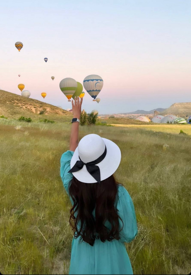 На снимках она позирует на фоне воздушных шаров, также Махаббат загрузила несколько видео в сториз о своем путешествии в эту удивительную часть Турции.