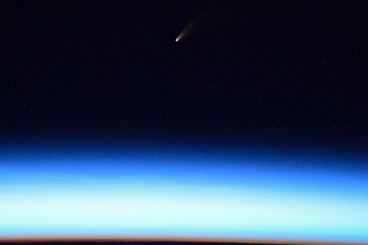 Разглядеть комету поближе удалось космонавту Роскосмоса Ивану Вагнеру. Он запечатлел NEOWISE с борта Международной космической станции.