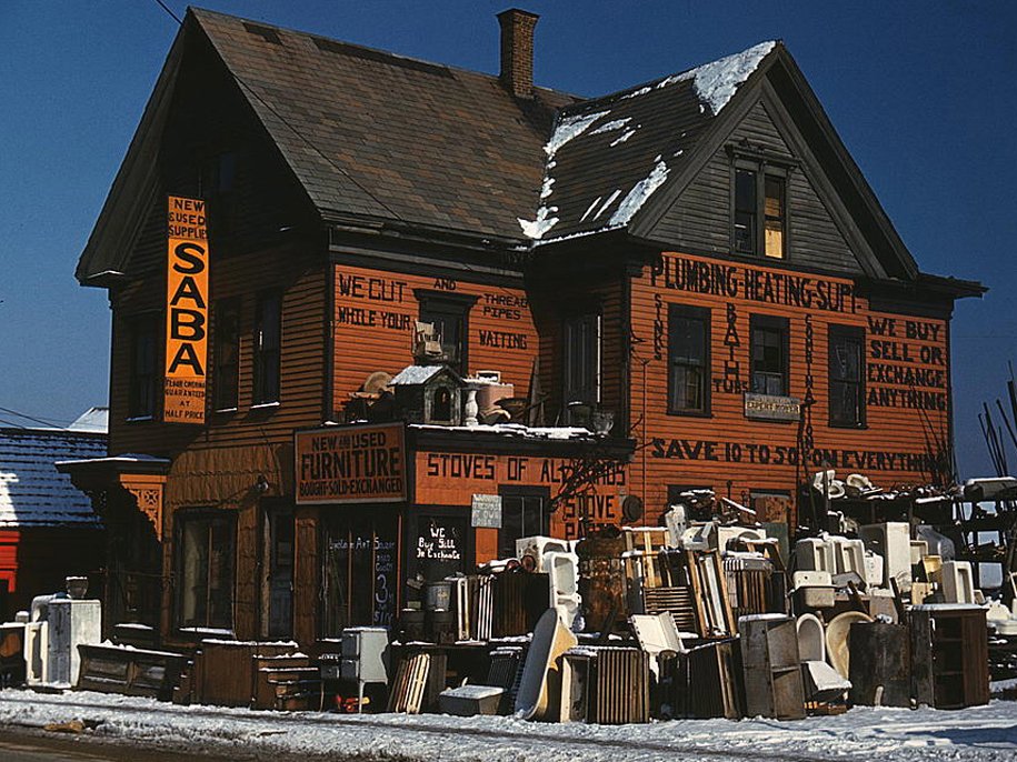 Магазин подержанной сантехники в Броктоне, штат Массачусетс, декабрь 1940 года