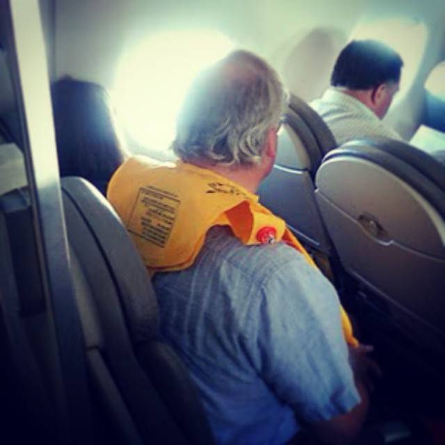 Этот мужчина решил обезопасить себя и надел спасательный жилет, так, на всякий случай.