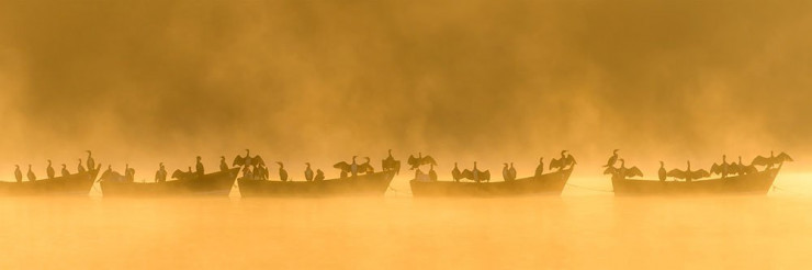 Бронзу в этой категории получил Роберт Мейнард из Великобритании. На снимке множество птиц, похожих на бакланов. Они оккупировали лодки, стоящие в один ряд.