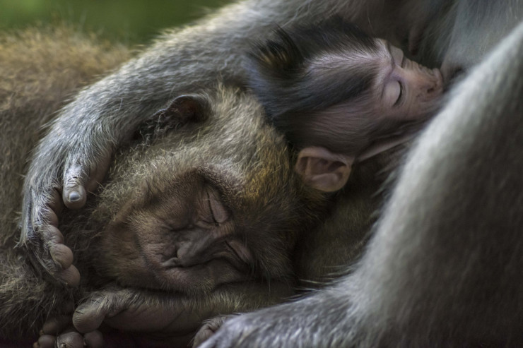 Снимок Тома Виеруса с макаками, наслаждающимися сном, на Бали занял первое место в категории "Портреты животных".