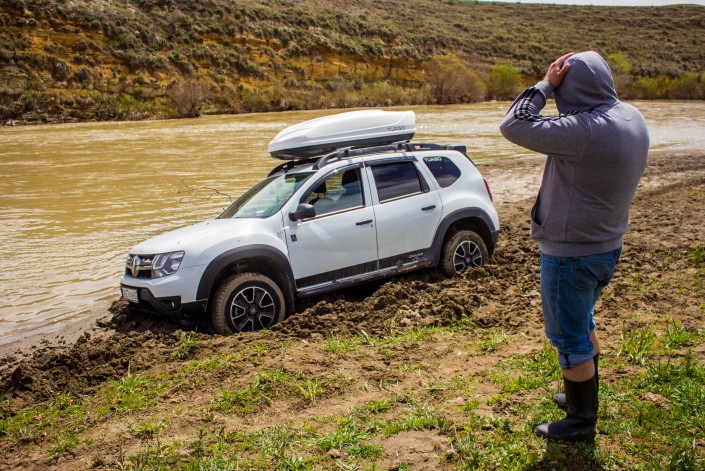 Там же произошел казус: машину путешественников начало засасывать. Все попытки вытащить авто, в том числе и откапывание, закончились безуспешно.