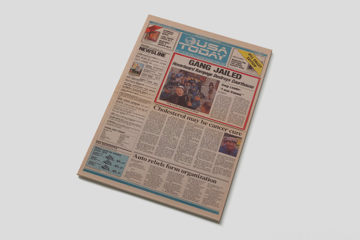 Технологию видеоконференций в свое время предсказывали все кому не лень, и Роберт Земекис - не исключение. Так оно и вышло: Skype появился в 2003 году, позже к нему присоединились Facetime, Viber и прочие. Только вряд ли кто-то обсуждает в Skype аферы, как это делают в фильме старый Марти МакФлай и его нечистый на руку партнер Нидлс. К тому же во вселенной Земекиса нет Интернета, видео тут - опция телефонной связи. Отсюда пара трогательных моментов: перед тем как выйти в чат, МакФлай просит своих вздорных детей освободить линию, а после получает по факсу бумажку об увольнении. Факсы, как известно, вымерли, но, в конце концов, это не агентство предсказаний, а комедийно-приключенческий фильм для юношества. Лучше обратить внимание на следующие откровения: немыслимый в домохозяйствах 1989 года плоский экран (да еще с соотношением сторон 16×9 вместо тогдашнего телестандарта 4х3), текстовые сообщения на этом экране и догадку, что в видеочате за тобой тоже могут следить.