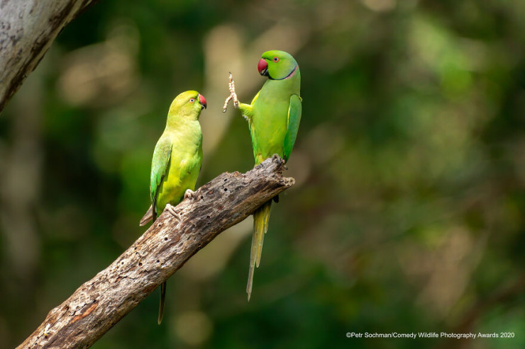 Снимки поступили на конкурс Comedy Wildlife Photography Awards 2020. Абсолютным чемпионом стал Марк Фитцпатрик с фотографией дерзкой черепахи Терри, которая показывает "средний палец". Мужчина поймал этот момент, когда плавал у острова Леди Эллиот в Квинсленде, Австралия. Черепашка приближалась к камере и показалась ему совсем недовольной: ее перевернутый ласт напоминает неприличный жест. За победу автор получил новую камеру и путевку на сафари в кенийский заповедник Масаи-Мара.