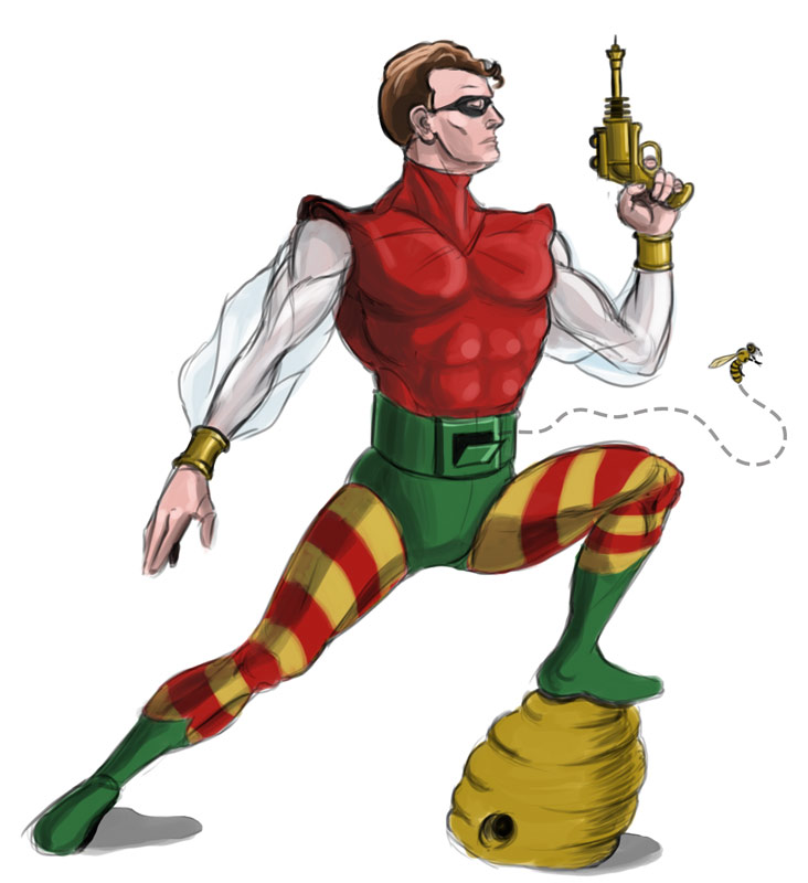 На пятом месте "супергерой" Красная Пчела. Это обычный мужчина в очень нелепом костюме. Злодеев он побеждает с помощью тренированного шмеля по имени Майкл, которого Красная Пчела держит в своем поясе и выпускает во время битвы.
