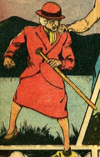 Девятой в списке стоит Мадам-Фаталь. Эта супергероиня на самом деле является мужчиной, который переодевается в старушку. Злодеев он избивает палкой.