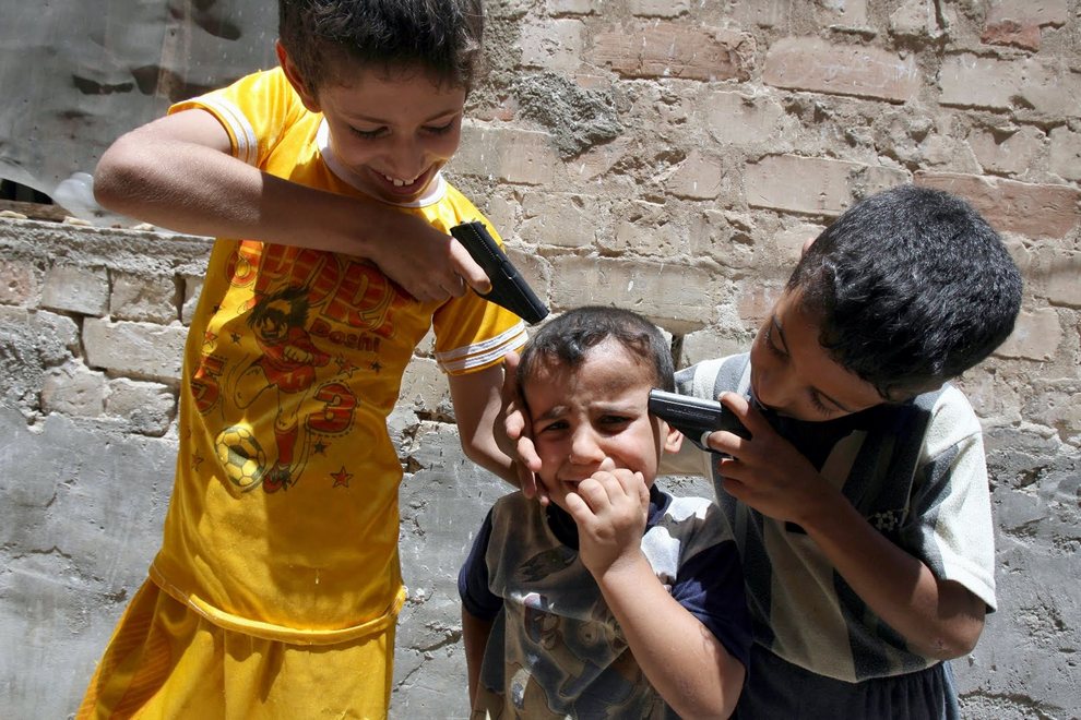 Иракские дети играют в войну, Багдад, Ирак. (NICK W)