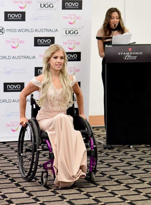 Так, 26-летняя австралийка стала первой женщиной с ограниченными возможностями, претендовавшей выступать от своей страны на "Мисс мира".