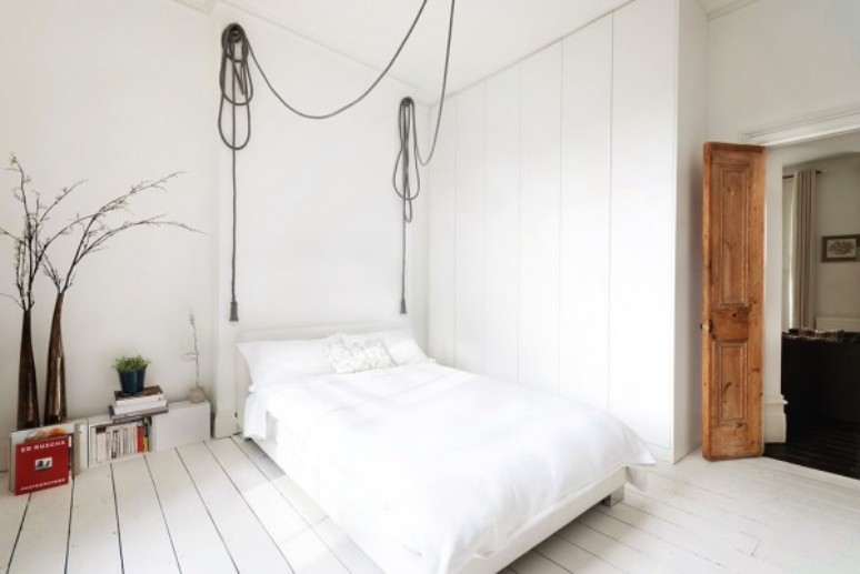 В спальне освещение осуществляют маленькие и простые светильники, также экономящие пространство и визуально увеличивая комнату.
