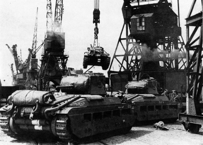 Погрузка танков "Матильда" в одном из британских портов для отправки по ленд-лизу в СССР. © razboiulpentrutrecut.wordpress.com