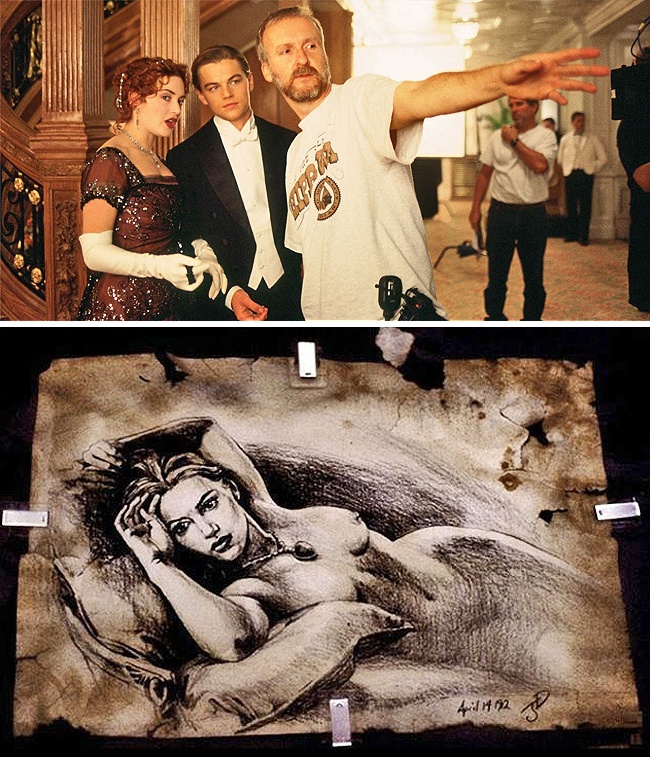 Знаменитый портрет Роуз, нарисованный Джеком в фильме "Титаник", на самом деле сделан Джеймсом Кэмероном, впрочем, как и другие зарисовки в альбоме Джека.