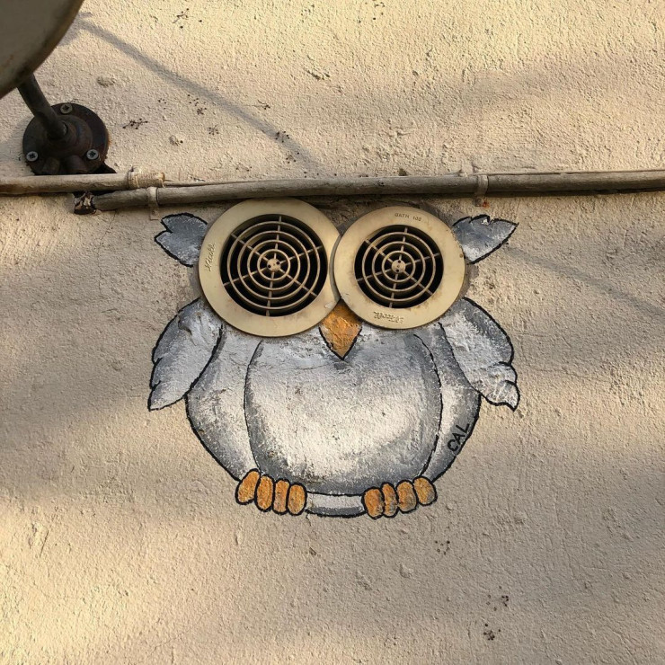 "Я бы назвал свое искусство беззаботным. Люблю разрисовывать все, что окружает меня. Стремлюсь связывать свои рисунки с предметами, чтобы они вписывались в местность. Много наблюдаю, ищу детали. Часто замечаю, что камень, кусок тротуара, дерево или кирпич на что-то похожи", - говорит Кэл.