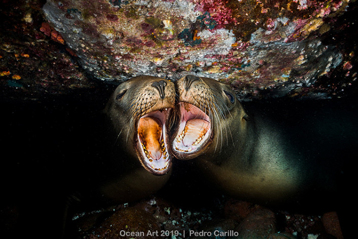 Автор снимка звездного шоу морских львов под скалистым выступом на Ислоте Лос-Лобос в Мексике Педро Карильо получил похвальную грамоту в номинации "Поведение морских обитателей".