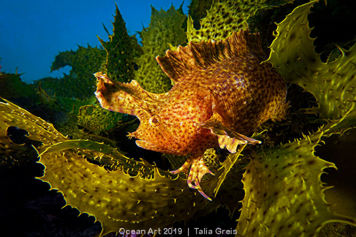 "Король камуфляжа" - желтая хохлатая рыба-водоросль (Cristiceps aurantiacus) автора Талии Грейс из Австралии удостоилась победы в номинации "Компактный широкий угол".