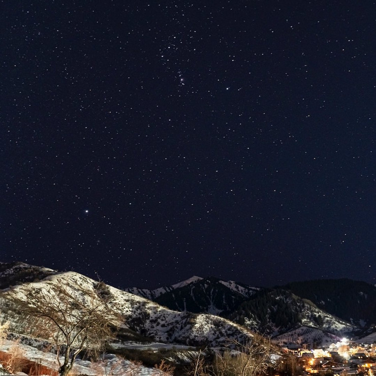 "Но если отъехать за город, условия видимости значительно улучшаются. Например, этот снимок ночного неба я сделал в Аксайском ущелье. Хорошо видно созвездие Ориона, звезду-гигант Бетельгейзе и красивое звездное скопление - Плеяды", - сказал Дмитрий.