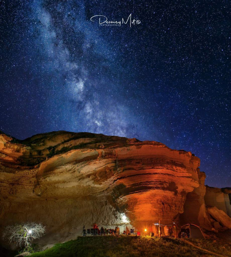 "Кстати, свет на скале - это свет фонаря тренирующихся скалолазов. В этих местах очень хорошо видно звездное небо и Млечный Путь, так как река находится далеко от города. Здесь чистый воздух и нет светового шума от города", - рассказала фотограф.