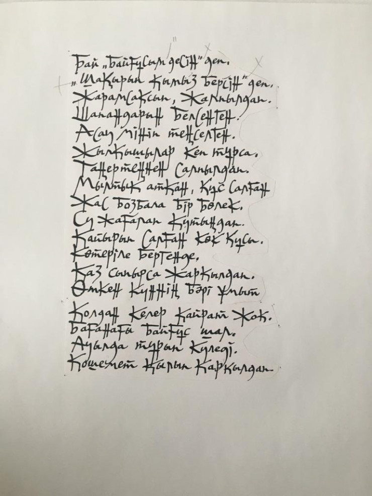Пример каллиграфии в книге "Абай", Табылды Мукатов. 2020 год