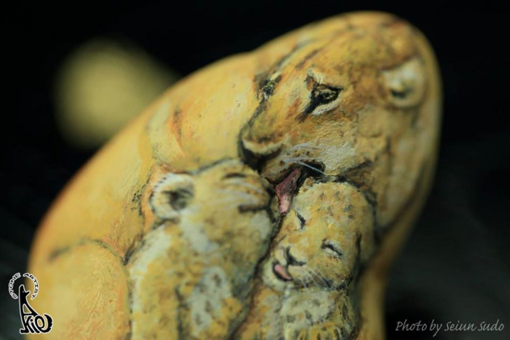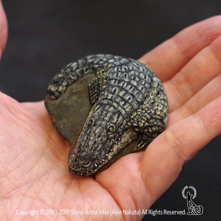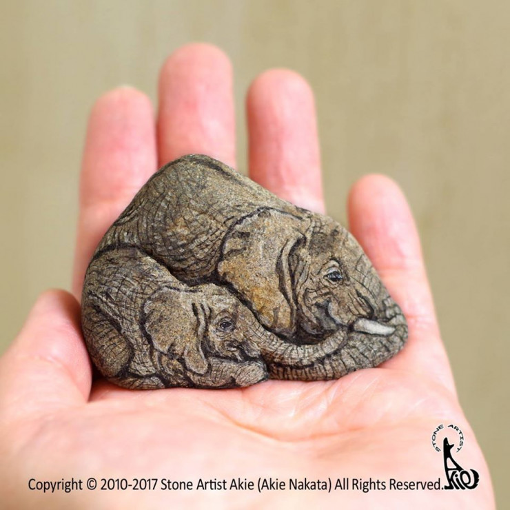 Художница вдыхает жизнь в обычные камни, превращая их в животных © facebook.com/stoneartist.akie