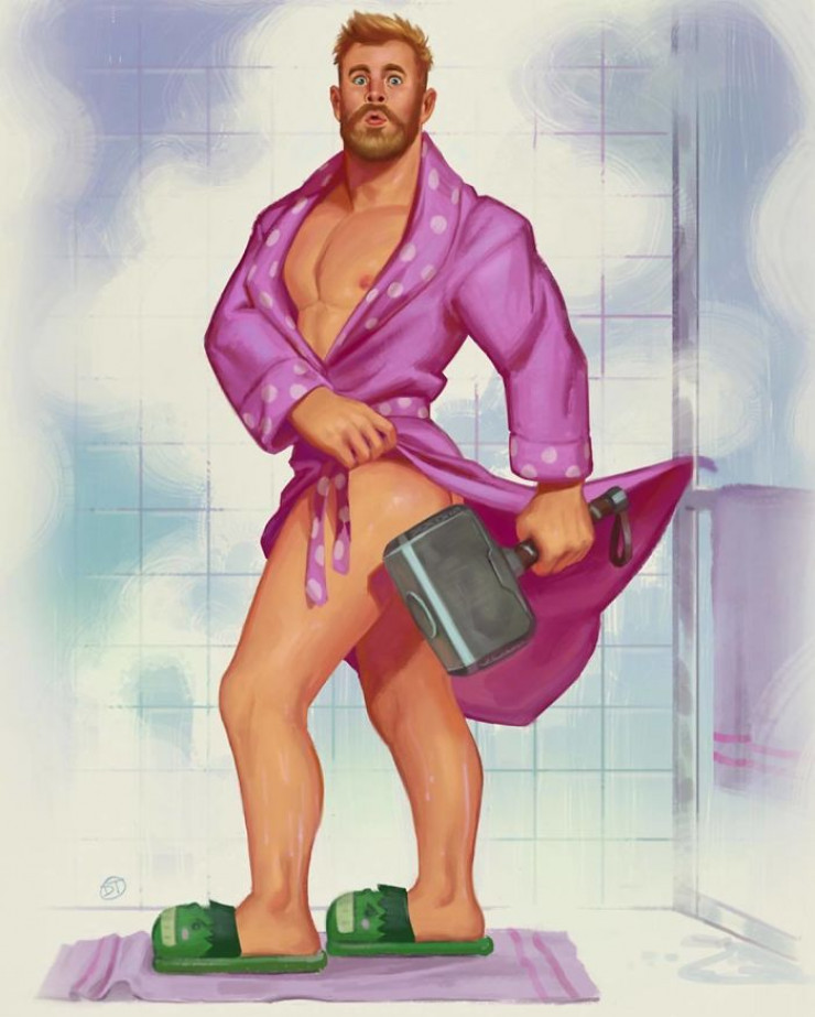В свободное время художник рисует для души. Два года назад он начал создавать серию забавных иллюстраций, в которых известные персонажи комиксов превращаются в моделей пинап. Самое необычное, что это мужчины-супергерои.