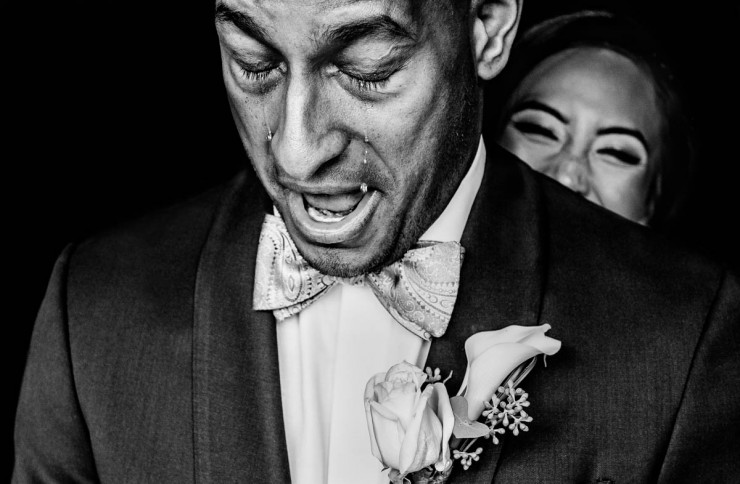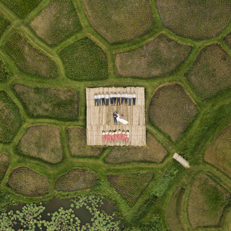 "Во время свадебных гуляний мы остановились в одном из баров в центральном районе Перта, чтобы выпить и расслабиться со своей командой, прежде чем отправиться на официальный прием. Локация была красивой, здесь имелись большие прямоугольные колонны, которые преломляли свет. Этот снимок как раз был сделан на углу колонны. Сначала мы снимали Лизу, стоящую напротив темной стороны, чтобы продемонстрировать свое потрясающее платье. Ее муж Джеймс стоял довольно близко, чтобы она направляла на него взгляд. Когда я делал снимки с разных углов, его силуэт начал попадать в кадр. Но снимок это не испортило. Мне сразу пришла в голову идея символа "инь и ян". Также, редактируя изображение позже, я решил придать ему шахматные черты, вдохновившись шахматной доской", - рассказал победитель фотоконкурса.