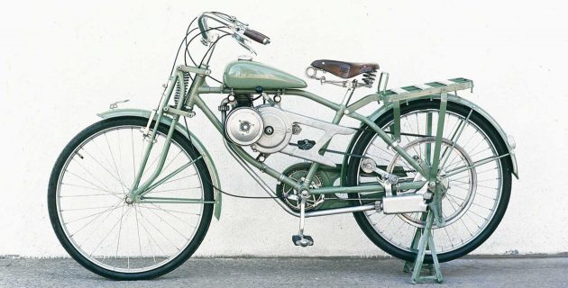 Казалось бы, пора сдаваться, но Хонда продолжал изобретать. Как-то он приделал к велосипеду жены керосиновый мотор - получилось что-то вроде мопеда.