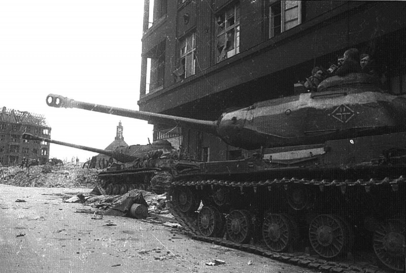 Танк ИС-2 7-й гвардейской тяжелой танковой бригады у Бранденбургских ворот.