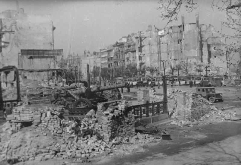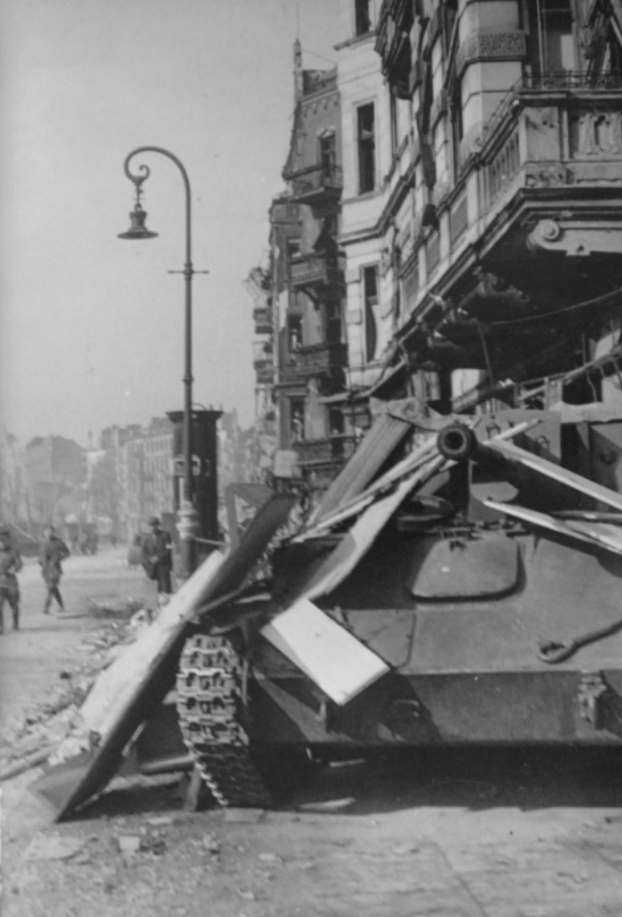 Советская САУ СУ-76М на перекрестке берлинских улиц.