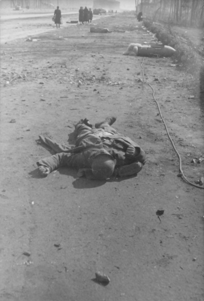 Начальник генерального штаба германских сухопутных войск генерал пехоты Ганс Кребс, прибывший 1 мая в расположение советских войск с целью втягивания Верховного командования в переговорный процесс. В тот же день генерал застрелился.