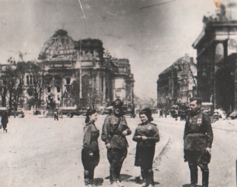 Первый день мира в Берлине. Советские солдаты общаются с мирными жителями.