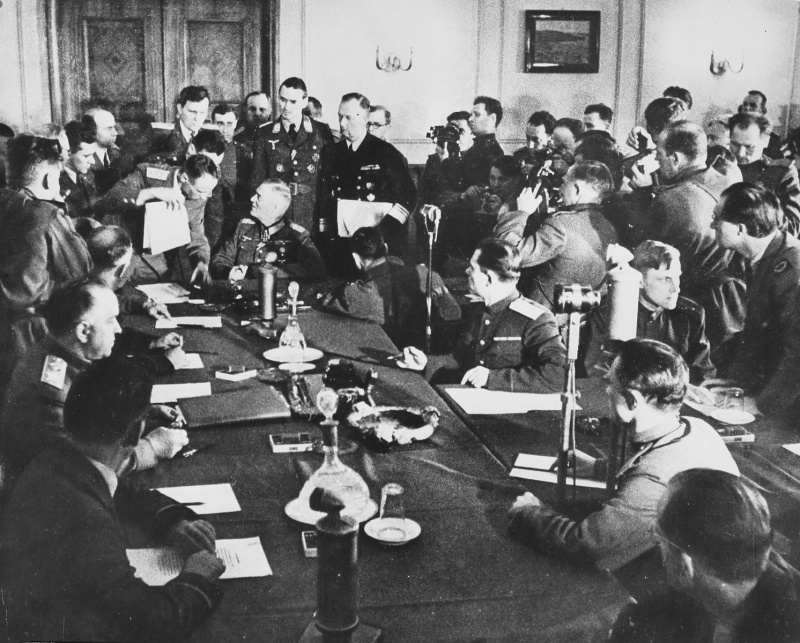 Кейтель подписывает Акт о безоговорочной капитуляции Германии.