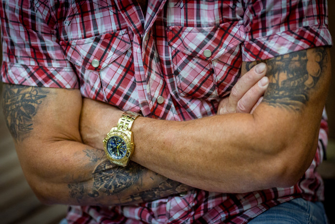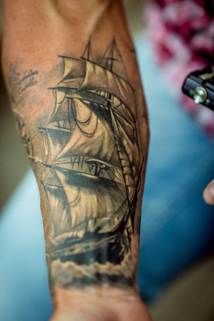 Картину дополняют тематические татуировки.