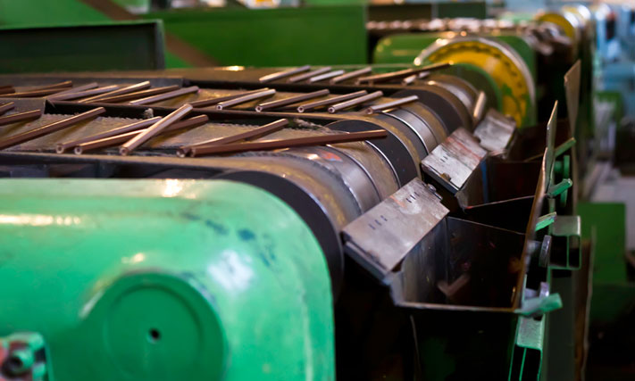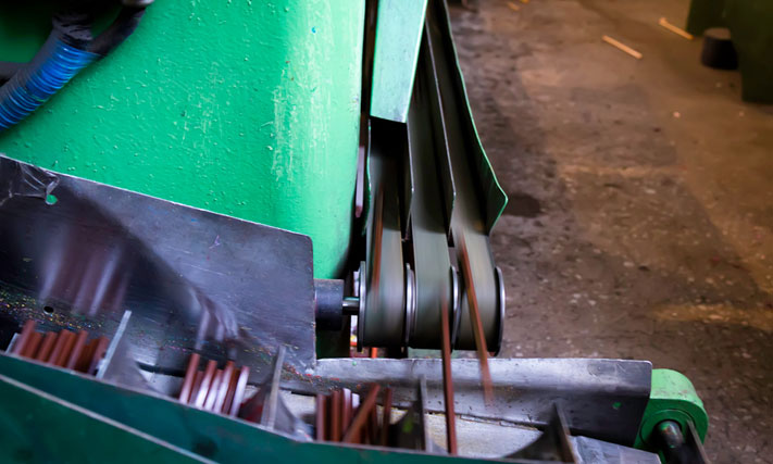 Полученный из бревна брус распиливают на короткие отрезки, каждый из которых затем распускают на десять дощечек. Чтобы все дощечки были одинаковыми, их нужно откалибровать. Для этого их прогоняют через специальный станок. На выходе из него дощечки имеют одинаковый размер и строго перпендикулярные грани.