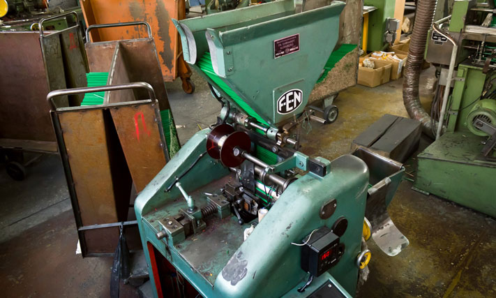 Кроме заточки станок можно настроить на выполнение вальцовки - обработки обратной торцевой части карандаша под небольшим наклоном. Теперь карандаши готовы к упаковке, их отправляют в следующее помещение. Там карандаши собирают в набор, складывают в коробку и направляют потребителю.