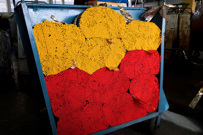 Отсортированные карандаши на специальном лифте поднимаются на следующий этаж, где их будут красить.