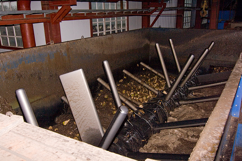Понятно, что прежде чем использовать свеклу, нужно ее очистить от земли, ботвы, прилипших камней, песка и прочих примесей - в готовый продукт все это попасть не сможет в любом случае, но испортить оборудование - запросто. Для этого, свекла, следуя по тракту подачи на производство, проходит через различные соломоботволовушки, камнеловушки, песколовушки. Для окончательной очистки свеклы от загрязнений корнеплоды проходят через свекломойку.
