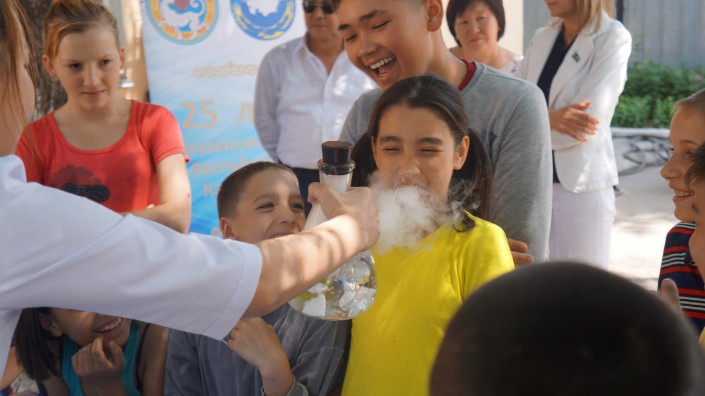 Совсем не горячо.. Но все равно страшновато! Занимательные опыты с "сумасшедшим профессором Николя" в КГУ "Приют для временного содержания несовершеннолетних", Алматы.