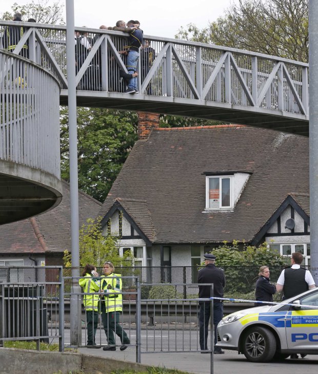 Мужчина в Северном Лондоне собирался прыгнуть с моста и покончить жизнь самоубийством. Сначала ему помешал один человек. Через два часа его держала толпа.