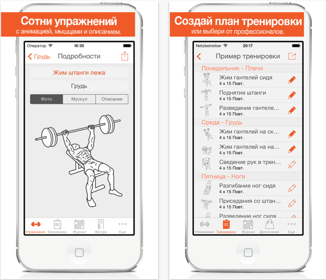 Приложение составит вам календарь тренировок, количество подходов и повторений, а так же расскажет как делать то или иное упражнение.