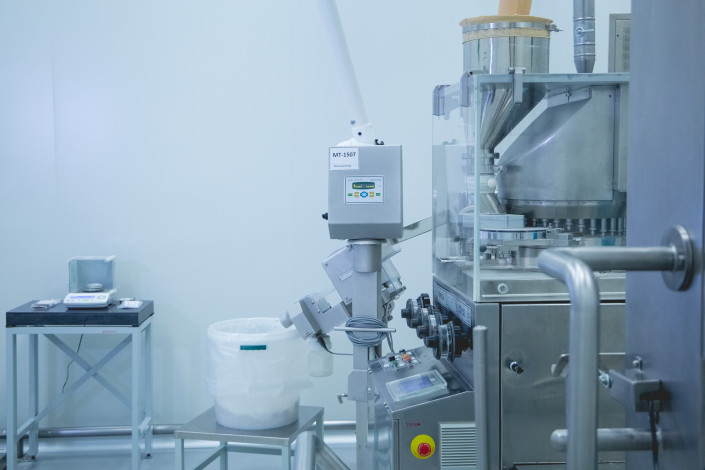 "Точно взвешенные в бин компоненты (активная фармацевтическая субстанция и эксципиенты), подают на стадию смешивания. Бин с компонентами устанавливают на смеситель. Затем технический оператор выбирает на панели управления необходимый рецепт смешивания и бин начинает вращаться, обеспечивая однородность и надлежащее смешивание компонентов. По окончанию данного процесса, бин с готовой таблеточной массой перемещают на стадию таблетирования. С помощью подъемной колонны бин поднимают над таблетным прессом и присоединяют к нему", - рассказывает директор по производству компании SANTO Светлана Майорская.