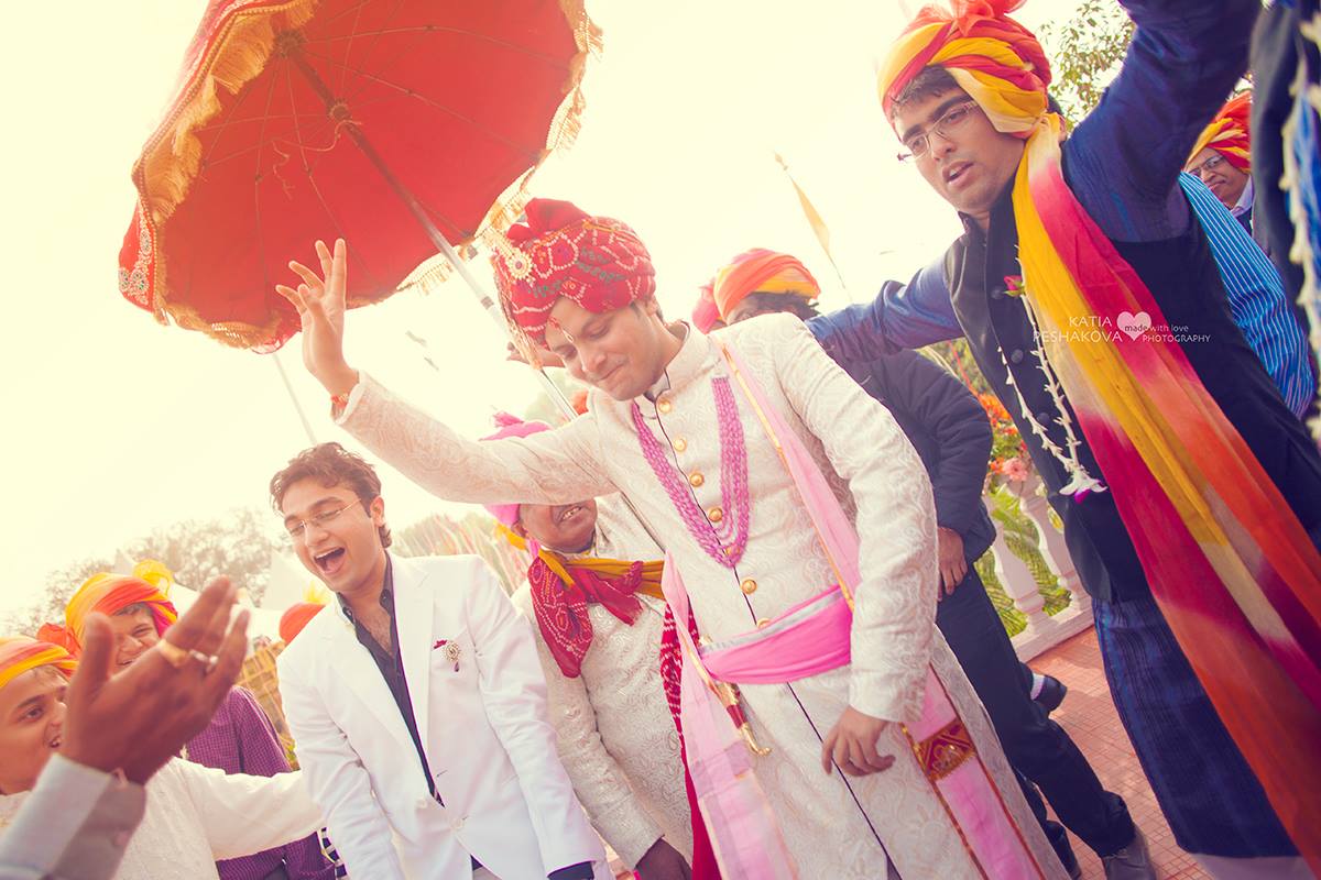 А в это самое время на стороне жениха вовсю идет празднество. На церемонию он прибывает в сопровождении танцующих родственников и друзей, на белом коне, как настоящий принц. Эта традиция известна только на севере Индии (на южно-индийских свадьбах совершенно другие обряды) и носит название Баарат.
