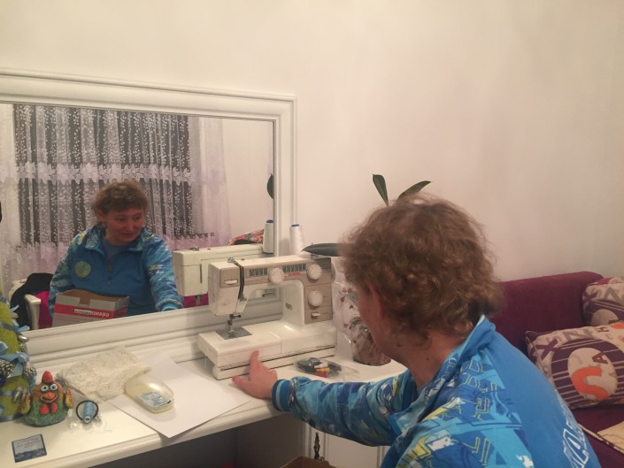В 2005 году тех, кто без работы остался, отправляли на различные курсы. Зульфия записалась на курсы шитья. Она дома сама шила, но сложных вещей не знала. Там ее научили правильно чертить, кроить. Машинки были электрическими, на которых нужно ногой нажимать на педаль, поэтому на курсах Зульфия только кроила. Уже потом дома на ручной швейной машинке она все строчила, но оверлока у нее не было. На следующий день она возвращалась с двумя пакетами. Оверложила вещи и там же их гладила. Так она сшила много платьев для дочери и для себя. Ее руководительница тогда поражалась желанию и азарту Зульфии. Она была единственной колясочницей в классе.