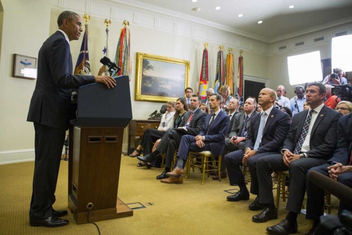 В центральной части Белого дома находятся также приватные помещения семьи президента США. Так, на этом снимке показано первое семейство, которое собралось в Зале договора, чтобы посмотреть игру женской сборной США на финале Кубка мира по футболу.