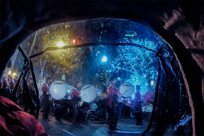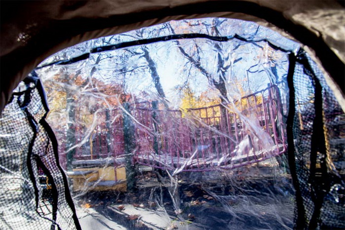 Камера была настроена так, чтобы делать фото каждые 10 секунд, и за несколько дней было сделано около 2000 снимков. В итоге получились снимки с низкого угла, а прозрачная крышка коляски послужила своеобразным фильтром.