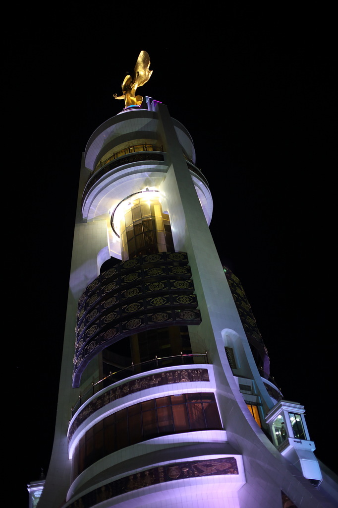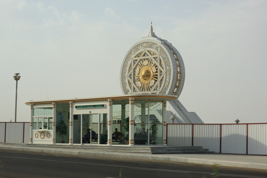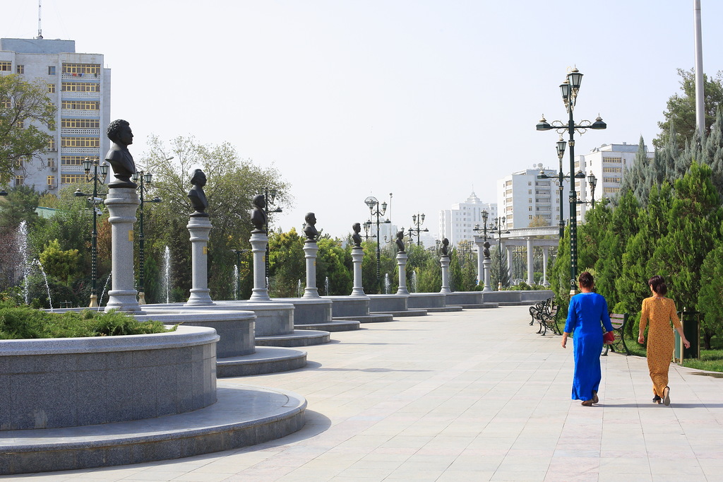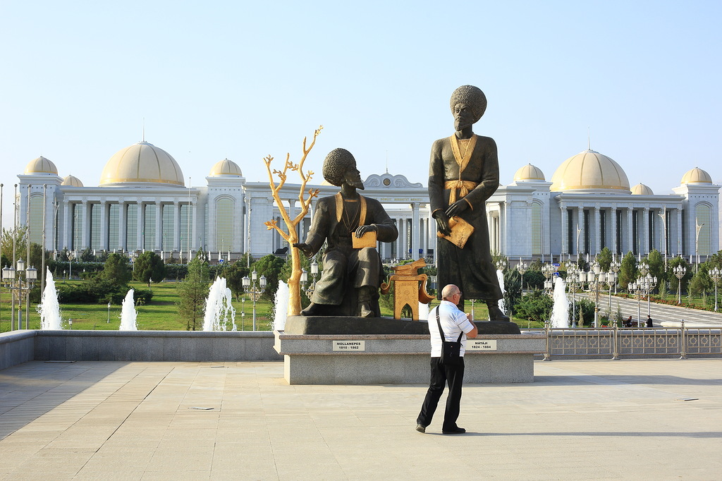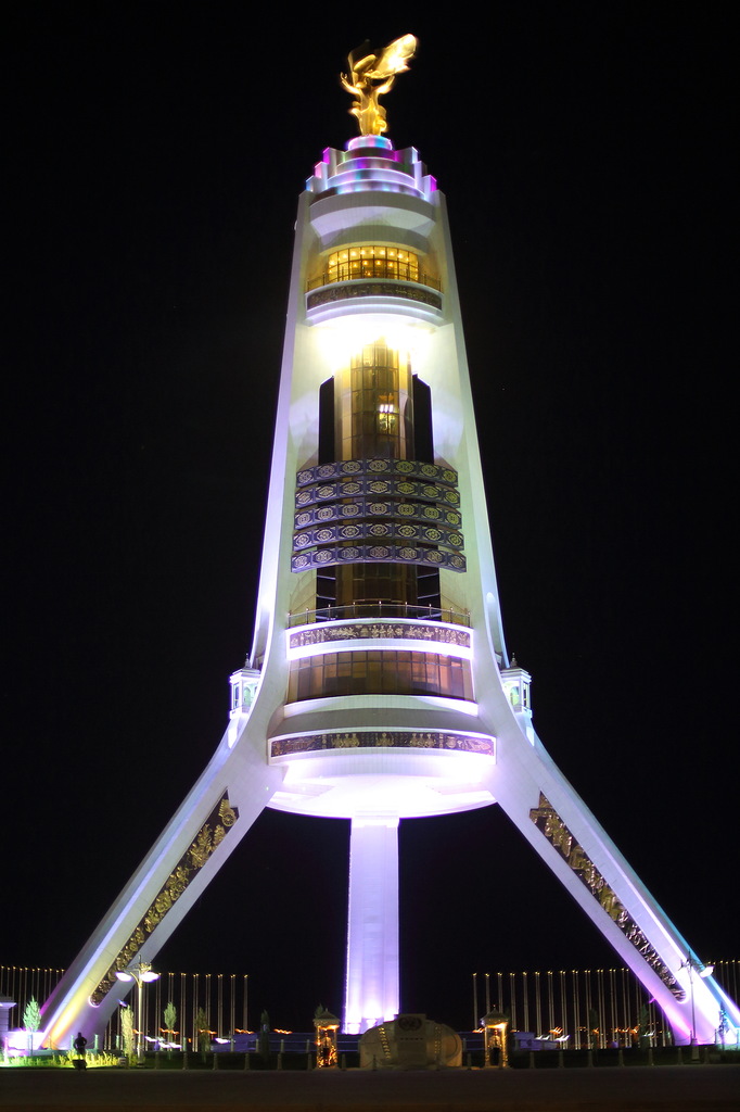 В стране активно борются с культом личности Сапармурата Ниязова Туркменбаши Великого: убрали с улиц десятки тысяч его портретов (сейчас повсюду портреты только нового президента, но его не называют Туркменбаши) и перенесли из центра в новый район главную 14-метровую вращающуюся за солнцем, стоимостью в 10 миллионов долларов скульптуру великого вождя всех туркмен. Все остальные 14 тысяч памятников, скульптур и бюстов, включая многочисленные позолоченные статуи Туркменбаши стоят на своих местах. Фотографировать их категорически запрещено. Снимал тайно, но все равно засекли и посвистели в спину. Хорошо, что хоть не потребовали стереть. Причину запрета на съемку никто не объясняет.