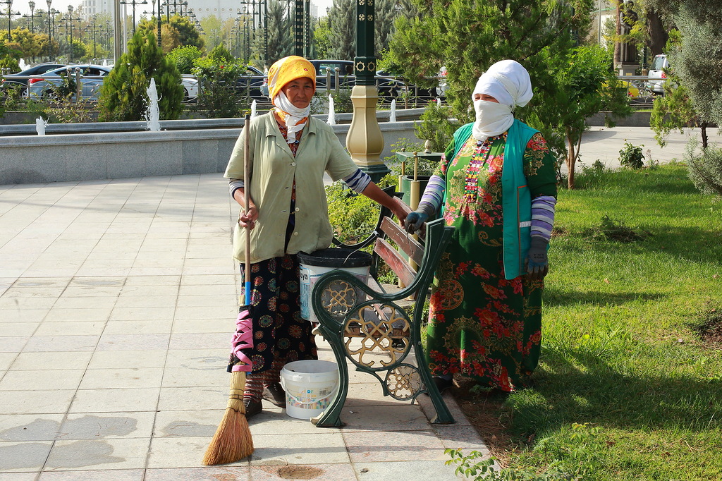 Работницы садово-паркового хозяйства. Если вы, прочитав про туркменские чудеса, уже собрались на ПМЖ в Туркменистан, то учтите, что для иностранцев, желающих жениться на туркменках, установлен государственный калым в 50 тысяч долларов. Есть второй вариант получения гражданства - создание нового предприятия с обязательным набором какого-то количества туркмен на работу. Через несколько лет успешной деятельности предприятия можно получить вид на жительство и далее гражданство. Нетуркмену в стране ничего хорошего не светит. Равно как невозможно занять хоть какой-то значимый пост в руководстве страны, города и прочее.