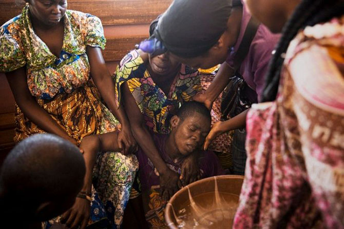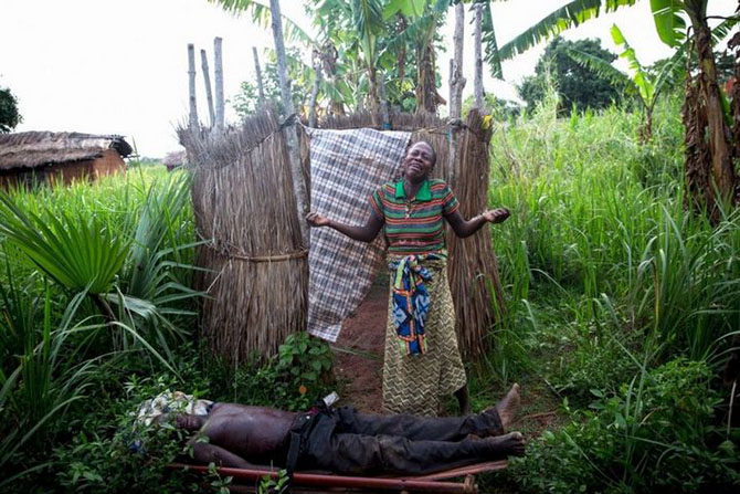 Люди оплакивают своих родственников, убитых бойцами группировки "Селека", в Гулинге.